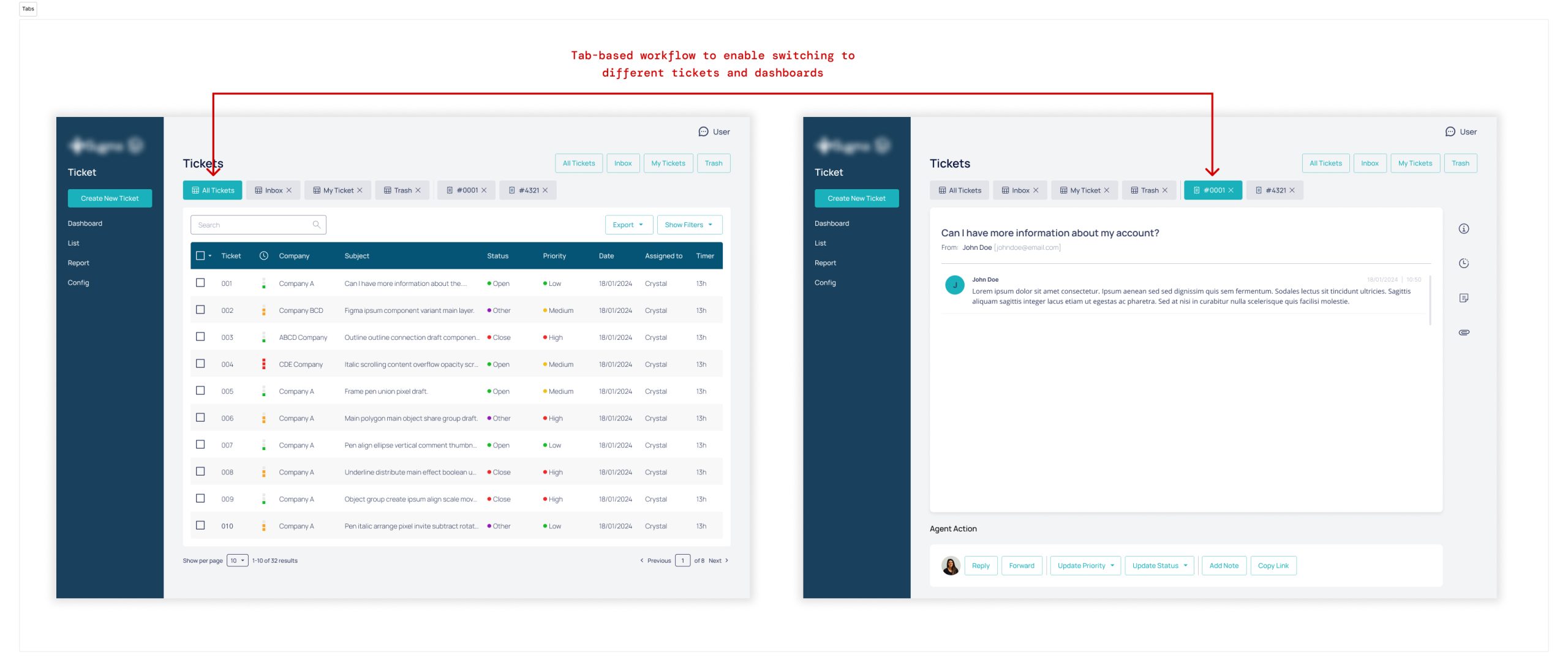 - Designed tab-based workflows to enable efficient multitasking across tickets