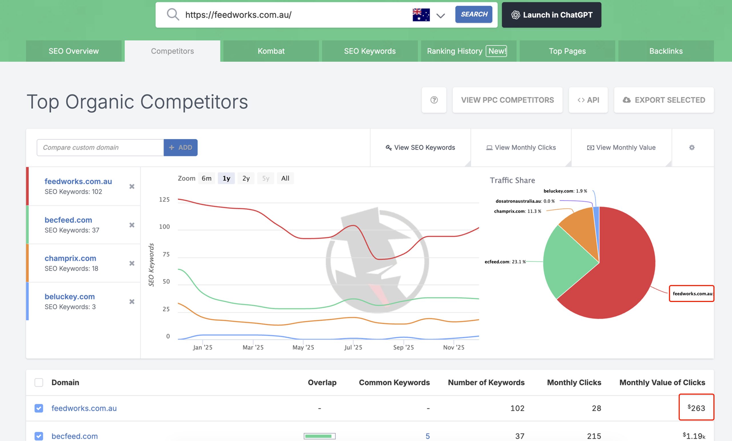 - Client emerged as the top organic competitor in its niche, ranking for 102 industry-relevant keywords, significantly more than direct competitors.