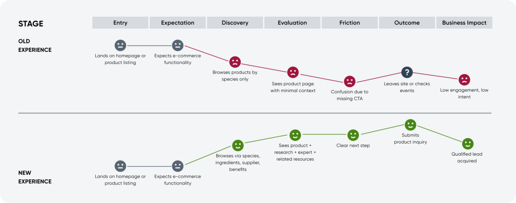 Instead of treating the redesign as a visual polish exercise, I used UX as a business lever, making it easier for buyers to find what they need, understand why it matters, and feel confident taking the next step.